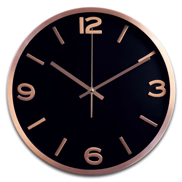 שעון קיר מתכתי יוקרתי בגימור נחושת עם מנגנון שקט כולל סוללה מידות: 30X30X4.3 ס"מ