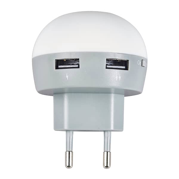 מטען קיר 2 יציאות USB נפח 2.1A ותאורת לילה